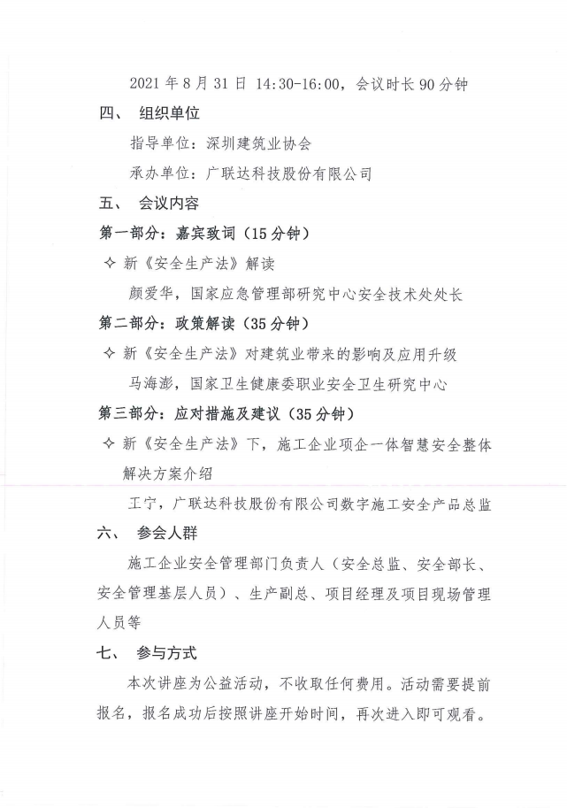 关于举办"解读新《安全生产法》,筑牢安全生产防线——建筑业安全生产公益直播讲座"的通知