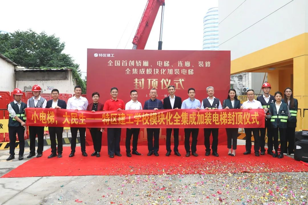 11月25日,“小电梯,大民生——特区建工学校12#楼全集成模块化加装电梯项目封顶仪式”在特区建工培训学校顺利举行,标志着全国首创轿厢、连廊装饰一体集成模块化加装电梯产品顺利应用。