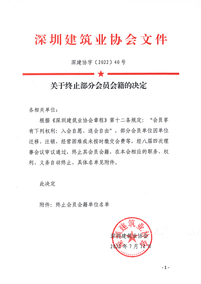 关于终止部分会员会籍的决定