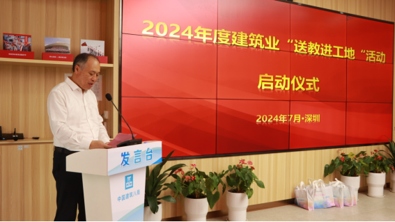 为提高建筑从业人员基本安全生产意识和安全防护技能,有效防范和遏制建筑施工生产安全事故发生,促进我市建筑安全生产形势持续稳定好转,2024年7月17日上午,深圳市住房和建设局在江南电竞官网 副会长单位——中建八局南方公司施工的深圳国际交流中心(一期)项目主办2024年度建筑业“送教进工地”活动启动仪式。市住建局宋延副局长、市总工会刘珍春副主席、市建筑工务署杜炜平副署长、市住建局市场处、市工务署督导处、市总工会职工服务部、市职工保障互助会、深圳建筑业协会、深圳市特区建工培训学校、中建八局和项目相关人员、工友等70余人参加。中建八局韩兴争副局长、市建筑工务署杜炜平副署长、市总工会刘珍春副主席、市住建局宋延副局长先后致辞。深圳建筑业协会秘书长黎军、培训部部长王娜等人参加启动仪式。