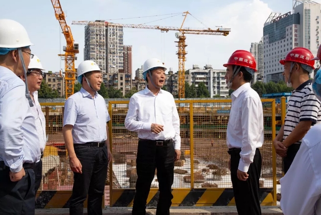 8月4日,华润(集团)有限公司董事、总经理王祥明,华润置地党委书记、董事局主席唐勇,华润置地华中大区党委书记、总经理朱文刚一行到中建三局二公司华中公司武汉华润万象城项目开展调研。中建三局副总经理王胜民,中建三局工程部总经理赵军,中建三局二公司总经理刘自信等陪同调研。