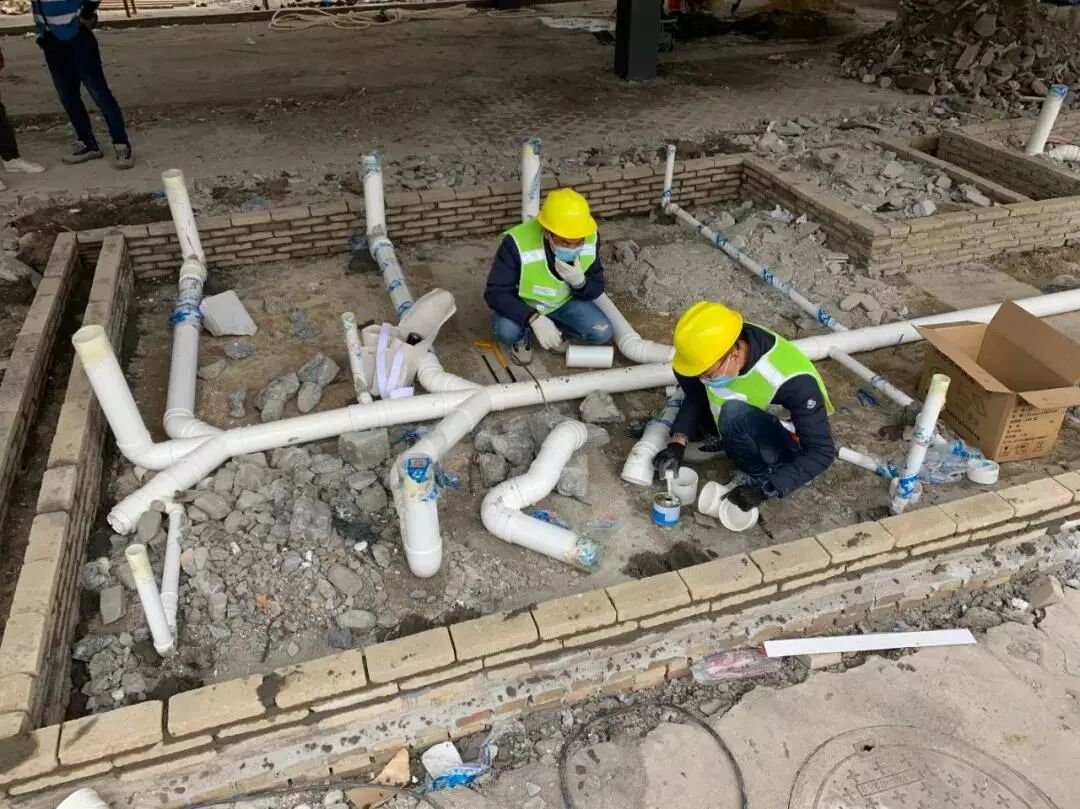 2月7日,临时板房宿舍区水沟切槽预埋完成;