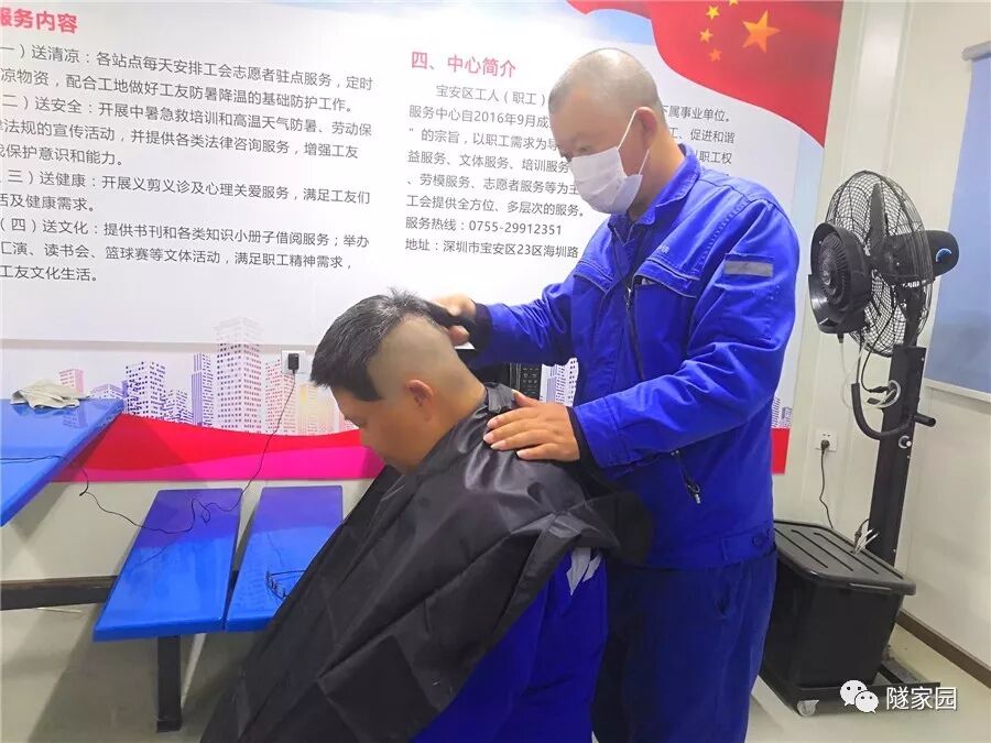 深中通道项目部员工王树兵说:“如今因为疫情,项目上实行了封闭式管理,出入艰难且外面店都关门了,眼看你们的头发一天比一天长,想到你们也没地方去剪发,我刚好有手艺、有工具,就想能为你们做点力所能及的事,也是对项目的贡献。”