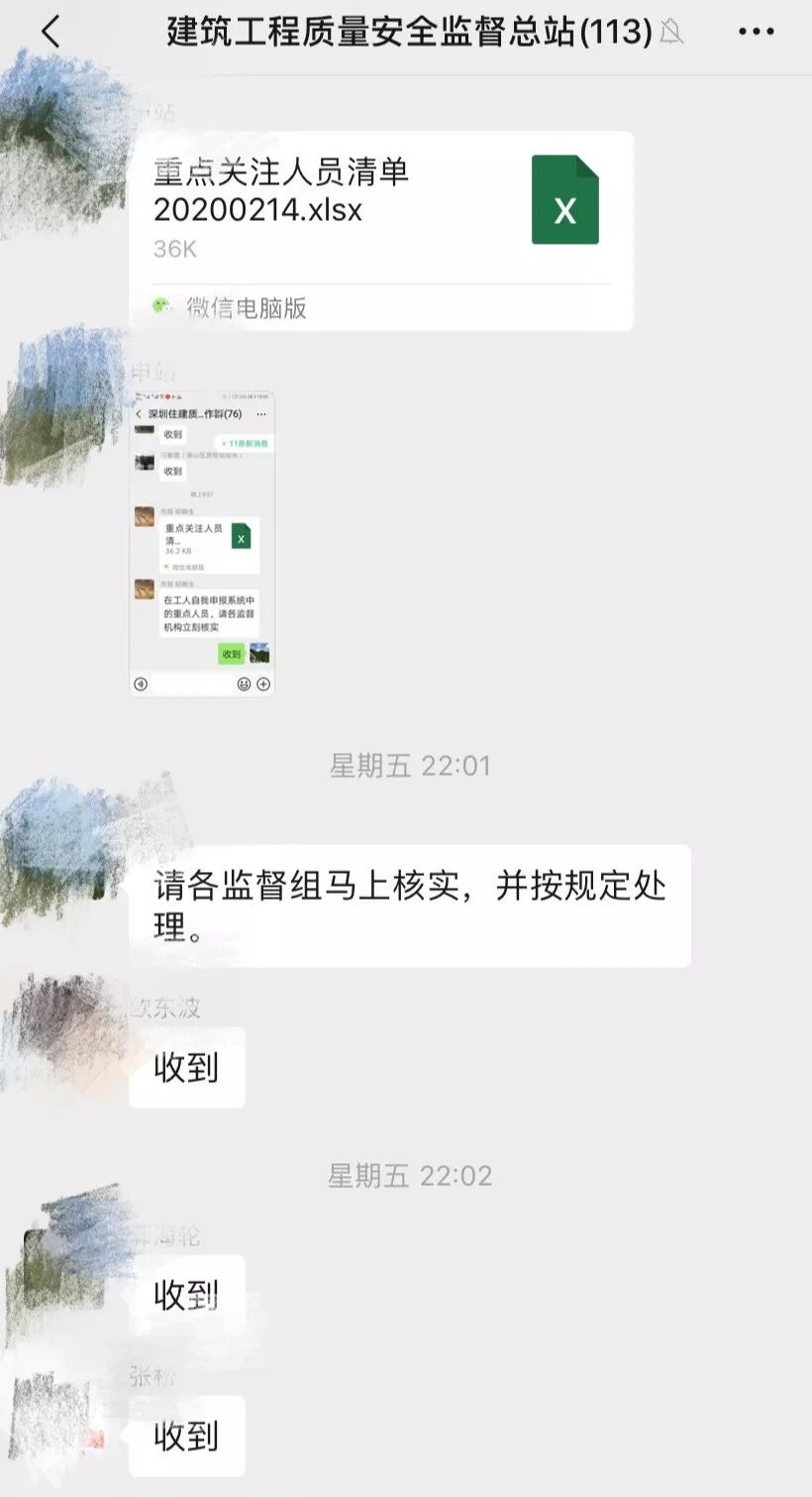 2月15日,市住房建设局质监站通过微信群发布通知,要求各在监项目全力做好疫情防控工作和数据报送工作。