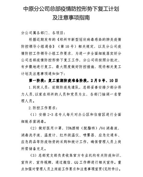 公司属各单位印发了相关指导文件,为疫情防控作了周密部署。