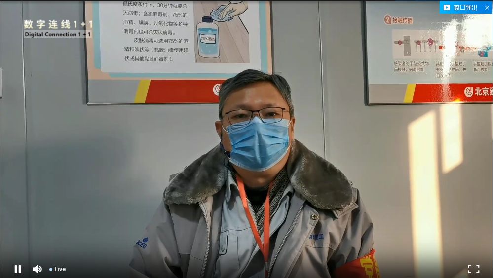 北京建工集团总承包部党委副书记、小汤山医院项目部党支部书记陈翌军先生接受讲座主持人采访