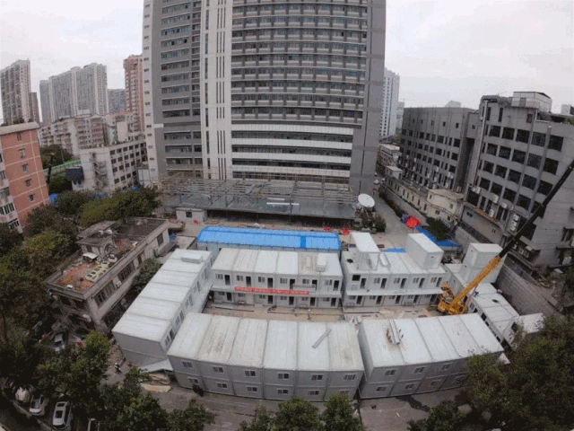 历经12天鏖战,截至目前,中建八局迅速建设了应急隔离病房72间、医护人员隔离板房32间,共使用标准集装箱396间。完成配套道路、给排水、照明、公用等工程建设。