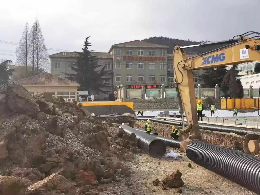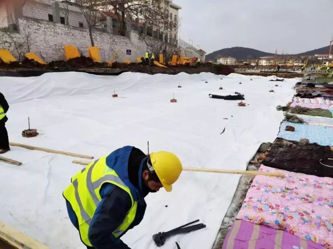 2月8日,施工一区医护通道基础浇筑完成;施工二区医护通道防渗层铺设完成;施工一区医护通道、二区房屋基础混凝土铺薄膜盖防寒被完成;施工一二区管沟开挖,管线开始连接;三区混凝土浇筑正在进行。