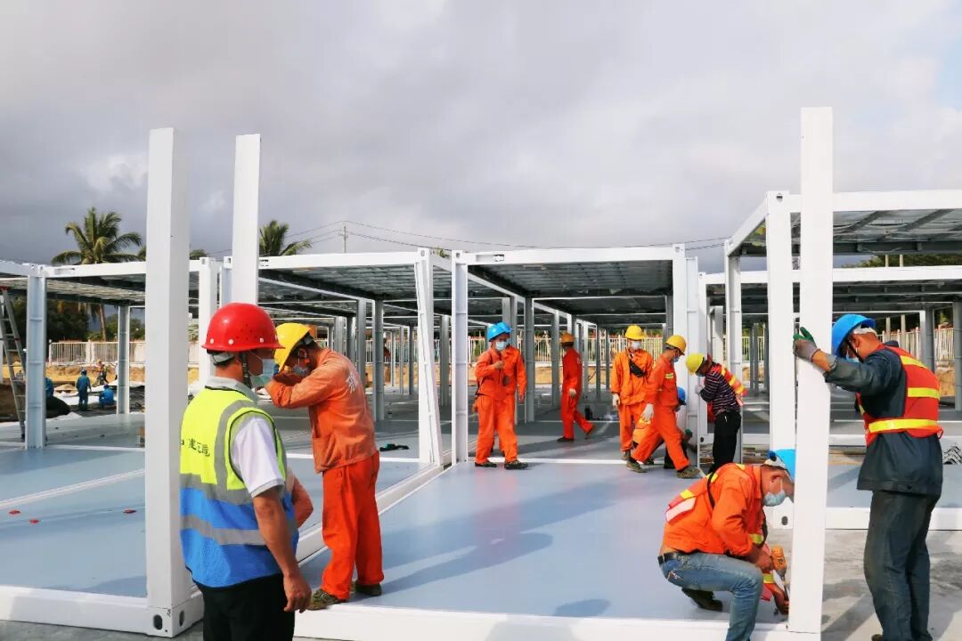 近日,中建五局受三亚市海棠区委托,扩建解放军总医院海南医院发热门诊。该项目建筑面积1.38万平米,占地面积3.1万平米,可容纳260个床位。包含疑似病区、确诊病区、ICU重症病房、手术室、诊室、接诊大厅,项目建成后可作为长久独立的发热病区使用。截至目前,进场箱房325个,安装完成300个,厢房内点位样板布置完成约60%,空调安装完成约30%,H型钢安装完成80%,消防车道混凝土浇筑除南侧作为临时道路外其他全部完成,市政排水管网开挖完成90%,安装完成70%。