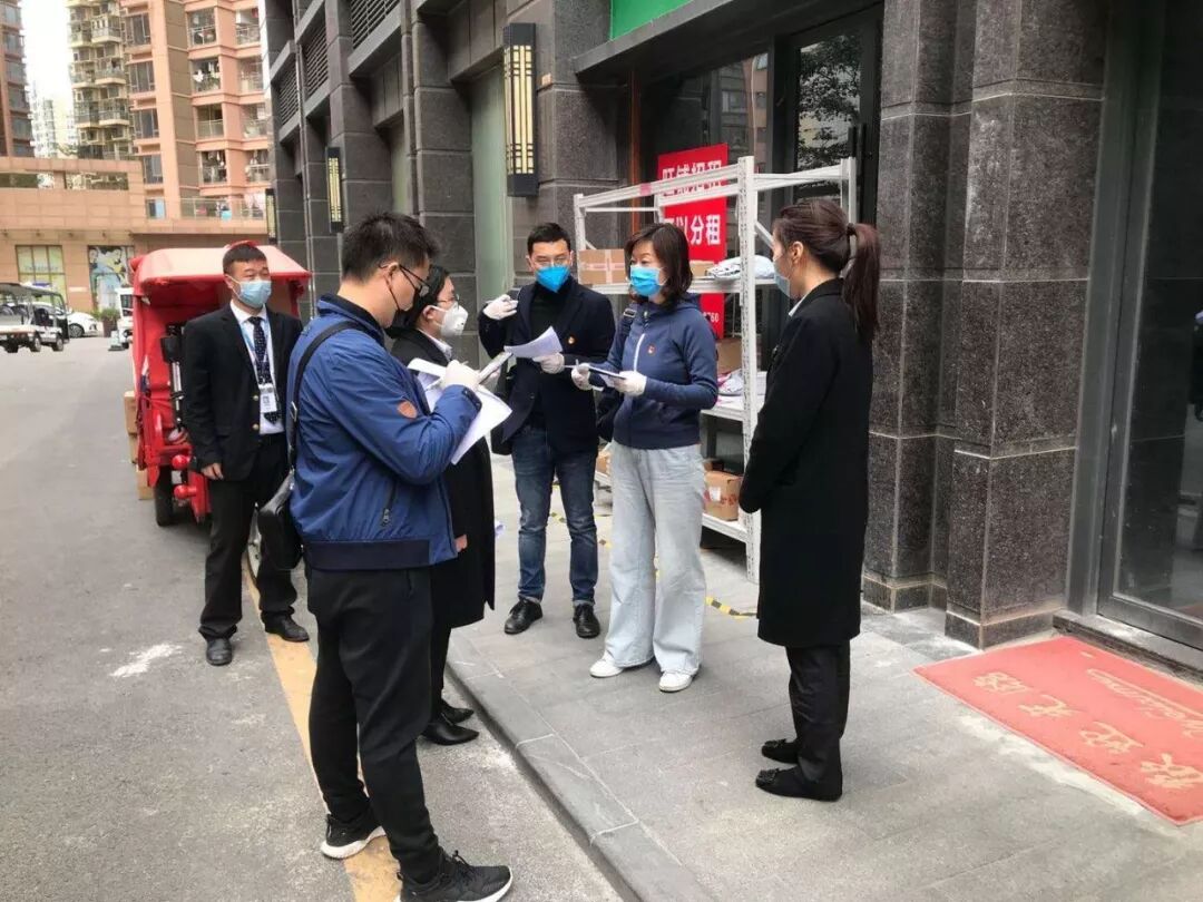 陈明辉(左二)随同街道指导服务组走访了解情况