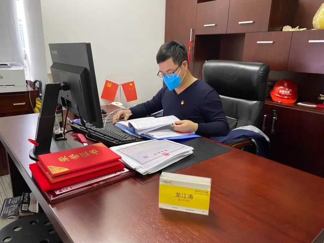 他叫龙江涛,市政总公司综合办公室主任,疫情爆发以来主动请缨申请在岗位值守,统筹协调公司各部门针对疫情每日填报各类报表,帮助公司领导和上级公司及时掌握公司动态。同时,还组织人员完成了疫情物资的采购与分发、参与编写《致深圳市政全体党员的倡议书》、组织编写市政总公司防疫工作制度8项、组织所属各单位针对疫情重新梳理审批流程等不计其数……