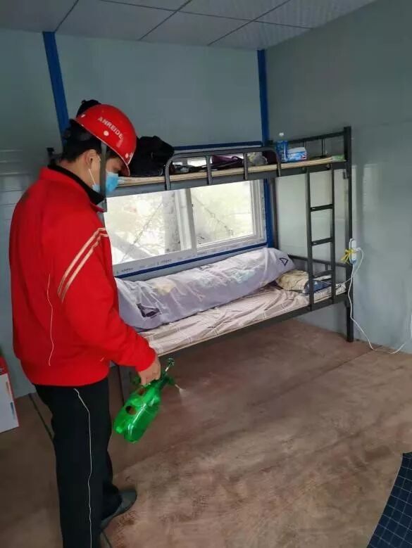 清晨,太阳刚刚升起,当大家正陆续赶路在上班途中,他已早早穿上工作服,背上消杀工具,开始对办公区、宿舍区开始消杀工作。每天的上午8:30和下午5:00,是固定的消杀时间。由于项目部部分人员未返深,已返深人员也尚在隔离期,面对人手不足的情况,他二话不说,背起消毒喷雾器对项目部的办公区域、住宿区域等地的每一个角落进行仔细消毒,每天两次,雷打不动。