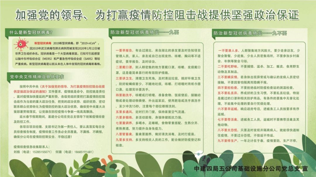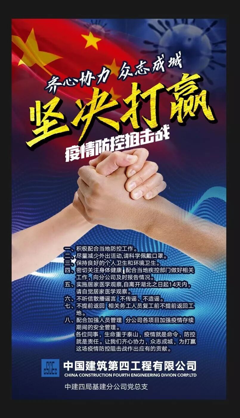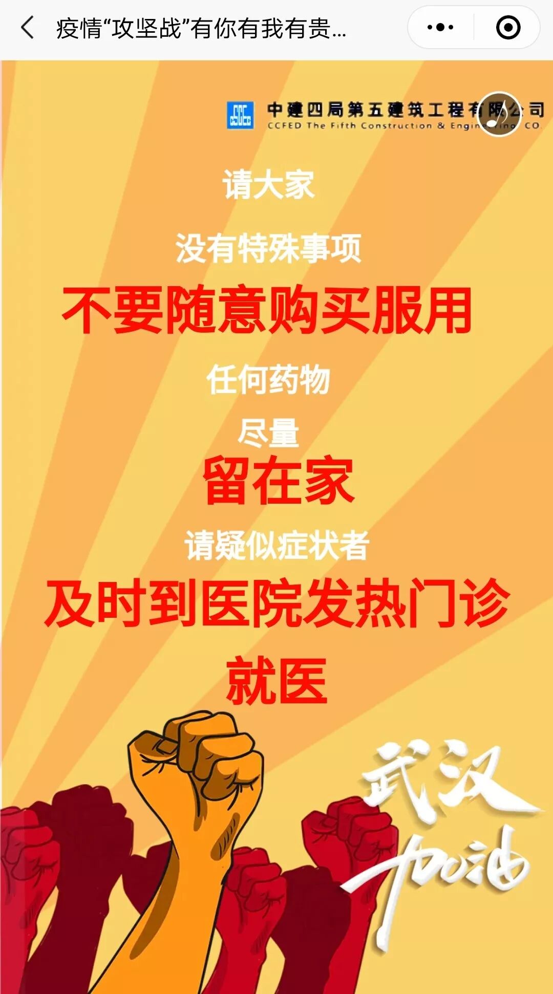 “疫情就是命令,防控就是责任”。为贯彻落实党中央、国务院的重要决策部署,加强预防新型冠状病毒感染的肺炎疫情联防联控工作,确保公司全体职工群众度过一个安定祥和的新春佳节,特向全体职工群众发出以下倡议: