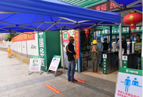 中国华西根据《深圳市建设工程项目疫情防控和复工指引》规定,认真做到“四个到位”:防控机制到位、员工排查到位、设施物资到位、内部管理到位。同时,公司疫情防控工作领导小组靠前指挥,深入项目一线,检查各项目疫情防控及复工复产工作,督促各项目部认真落实《深圳市住房和建设局关于加强工程项目封闭管理实行持码进出场制度的通知》,着力加强封闭式管理、严格落实个人信息扫码登记、实施人员进出持码查验等三个方面内容和以下八项具体措施。